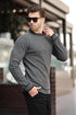 Antrasit Erkek Bisiklet Yaka Şerit Detaylı Uzun Kollu Örme Kazak 7245