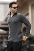 Antrasit Fermuar Yaka Uzun Kollu Örme Kazak 7286