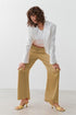 Bej Beli Büzgülü Saten Bol Paça Kadın Pantolon MG2019