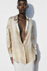 Bej Çizgili Oversize Kadın Gömlek MG1850