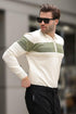 Bej Fermuarlı Polo Yaka Çizgili Uzun Kollu Kazak E7288