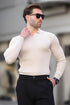 Bej Polo Yaka Çizgili Uzun Kollu Erkek Kazak 7289