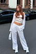 Beyaz Beli Büzgülü Wide Leg Kadın Kumaş Pantolon MG1950