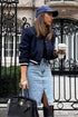 Buz Mavisi Midi Yırtmaçlı Kot Etek MG1848