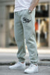 Çağla Yeşili Erkek Paçası Lastikli Cep Detaylı Baskılı Eşofman Altı 6553
