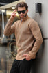 Camel Fermuar Yaka Uzun Kollu Desenli Örme Kazak E7287