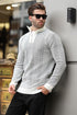 Ekru Fermuar Yaka Uzun Kollu Desenli Örme Kazak E7287
