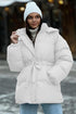 Ekru Kapüşonlu Kuşak Detaylı Şişme Mont MG2179