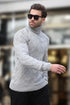 Gri Balıkçı Yaka Desenli Erkek Kazak E7292