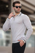 Gri Fermuarlı Polo Yaka Çizgi Detaylı Uzun Kollu Kazak 7267