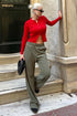 Haki Beli Lastikli Yüksek Bel İspanyol Paça Triko Pantolon MG2211