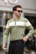 Haki Fermuarlı Polo Yaka Çizgili Uzun Kollu Kazak E7288