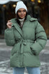 Haki Kapüşonlu Kuşak Detaylı Şişme Mont MG2179