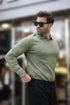 Haki Polo Yaka Çizgili Uzun Kollu Kazak 7239