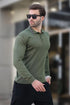 Haki Polo Yaka Düğmeli Uzun Kollu Kazak 7269