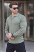 Haki Erkek Polo Yaka Fermuarlı Uzun Kollu Erkek Kazak 7240