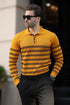 Hardal Düğmeli Polo Yaka Çizgili Uzun Kollu Kazak 7270