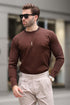 Kahverengi Bisiklet Yaka Çizgili Uzun Kollu Kazak E7273