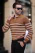 Kahverengi Düğmeli Polo Yaka Çizgili Uzun Kollu Kazak 7270