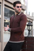 Kahverengi Fermuar Yaka Çizgi Detaylı Erkek Kazak E7290
