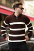 Kahverengi Fermuarlı Polo Yaka Çizgili Uzun Kollu Kazak 7283