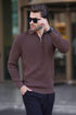 Kahverengi Polo Yaka Fermuarlı Uzun Kollu Erkek Kazak 7240