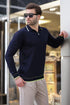 Lacivert Fermuarlı Polo Yaka Çizgi Detaylı Uzun Kollu Kazak 7267