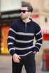 Lacivert Fermuarlı Polo Yaka Çizgili Uzun Kollu Kazak 7283
