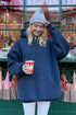 Lacivert Kapüşonlu Şardonlu Oversize Kadın Sweatshirt MG1566