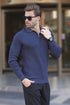 Lacivert Polo Yaka Fermuarlı Uzun Kollu Erkek Kazak 7240