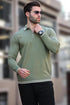 Mint Yeşili Fermuar Yaka Çizgi Detaylı Erkek Kazak E7290
