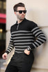 Siyah Düğmeli Polo Yaka Çizgili Uzun Kollu Kazak 7270