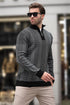 Siyah Fermuar Yaka Uzun Kollu Desenli Örme Kazak E7287