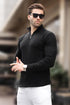Siyah Fermuar Yaka Uzun Kollu Örme Kazak 7286