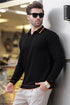 Siyah Fermuarlı Polo Yaka Çizgi Detaylı Uzun Kollu Kazak 7267