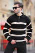 Siyah Fermuarlı Polo Yaka Çizgili Uzun Kollu Kazak 7283