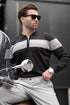 Siyah Fermuarlı Polo Yaka Çizgili Uzun Kollu Kazak E7288