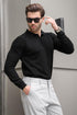 Siyah Polo Yaka Dokulu Uzun Kollu Kazak E7264