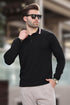 Siyah Polo Yaka Düğmeli Uzun Kollu Kazak 7269