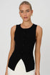Siyah Kadın Sıfır Kol Düğmeli Örgü Tişört MG2102