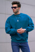 Petrol Mavi Bisiklet Yaka Oversize Şardonlu Basic Erkek Sweatshirt 6048