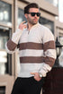 Taş Rengi Fermuar Yaka Çizgili Erkek Kazak E7272