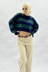 Yeşil Bisiklet Yaka Çizgili Triko Kadın Kazak MG2167