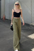 Yeşil Bol Paça Müslin Kadın Pantolon MG1980