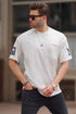 Ekru Cep Detaylı Kolu Baskılı Basic Erkek Tişört 7016