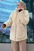 Ekru Yüksek Yakalı Cepli Kadın Peluş Mont MG1948