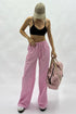 Fuşya Kadın Beli Ayarlanabilir Bol Paça Dökümlü Çizgili Pantolon MG2087