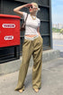 Haki Kemer Detaylı Bol Paça Kadın Pantolon MG1834