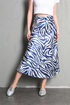 İndigo Kadın Zebra Desenli Uzun Saten Etek MG1409