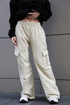 Kadın Bej Geniş Paça Kargo Cepli Eşofman Altı MG1615